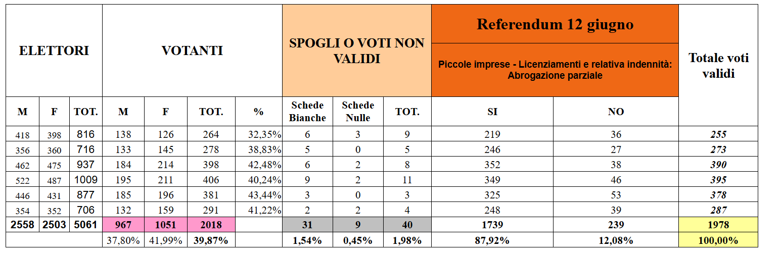 | Votanti domenica ore 12 | Totale | 501 | 9,90% |