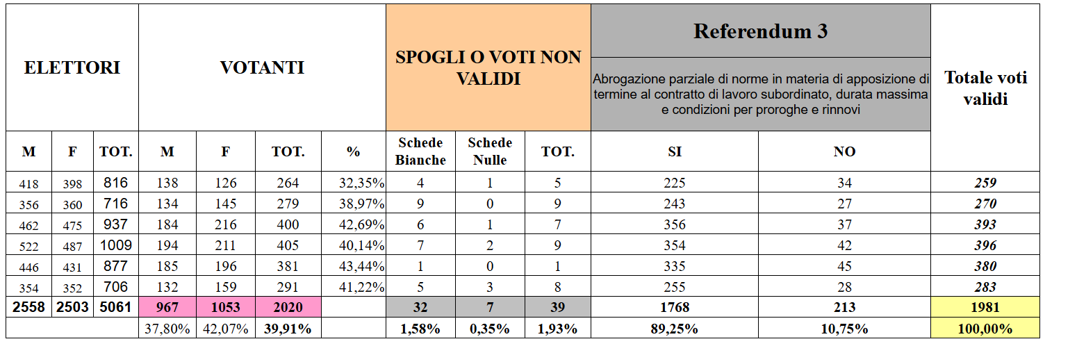 «Volete voi l’abrogazione dell’articolo 19 del d.lgs. 15 giugno 2015, n. 81 recante “Disciplina organica dei contratti di lavoro e revisione della normativa in tema di mansioni, a norma dell’articolo 1, comma 7, della legge 10 dicembre 2014, n. 183”, comma 1, limitatamente alle parole “non superiore a dodici mesi. Il contratto può avere una durata superiore, ma comunque”, alle parole “in presenza di almeno una delle seguenti condizioni”, alle parole “in assenza delle previsioni di cui alla lettera a), nei contratti collettivi applicati in azienda, e comunque entro il 31 dicembre 2025, per esigenze di natura tecnica, organizzativa e produttiva individuate dalle parti;” e alle parole “b bis)”; comma 1 -bis , limitatamente alle parole “di durata superiore a dodici mesi” e alle parole “dalla data di superamento del termine di dodici mesi”; comma 4, limitatamente alle parole “,in caso di rinnovo,” e alle parole “solo quando il termine complessivo eccede i dodici mesi”; articolo 21, comma 01, limitatamente alle parole “liberamente nei primi dodici mesi e, successivamente,”?»