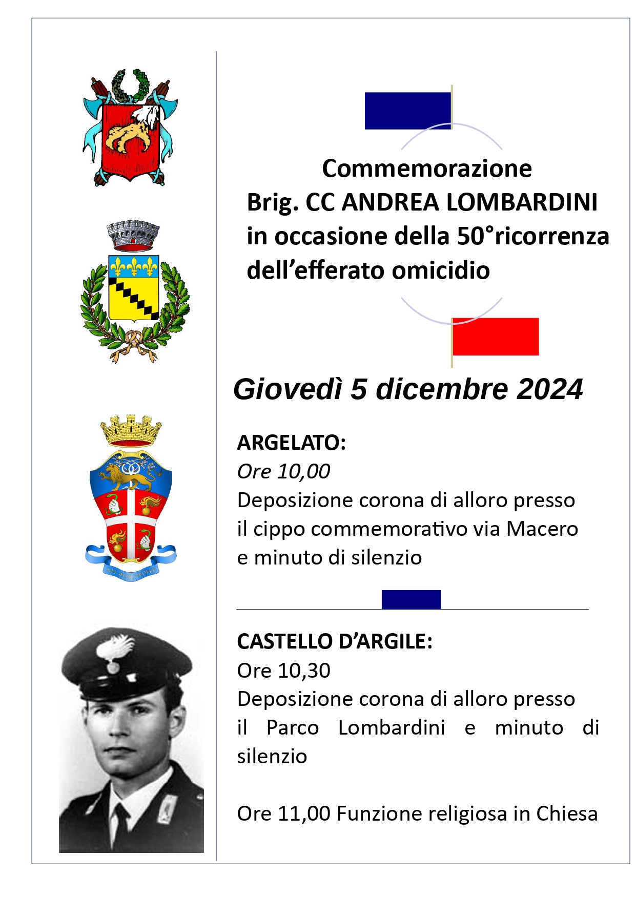 Commemorazione Brig. CC. ANDREA LOMBARDINI in occasione della 50° ricorrenza dell’efferato omicidio