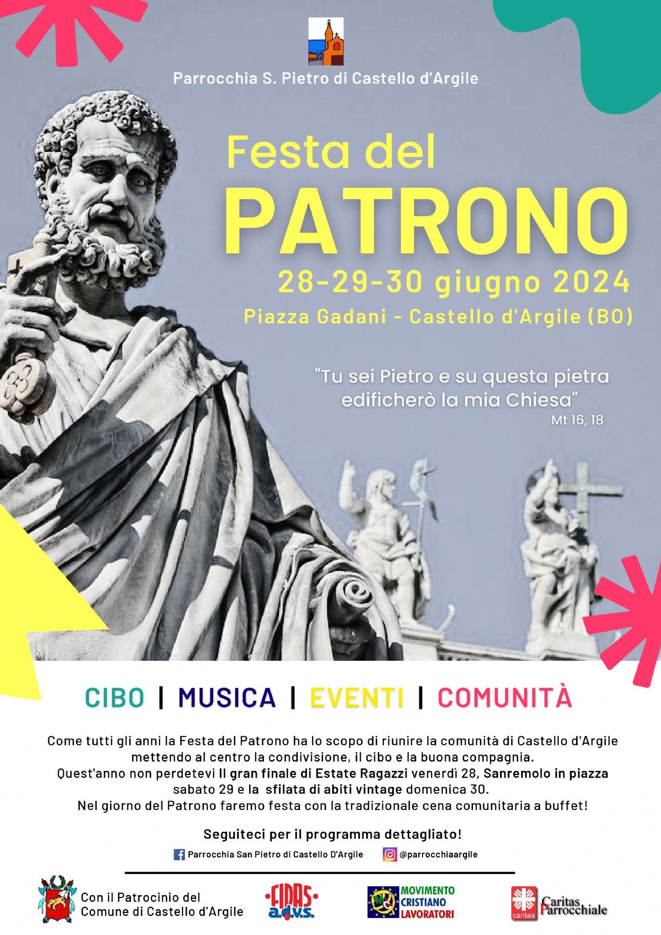 Come tutti gli anni la Festa del Patrono ha lo scopo di riunire la comunità di Castello d'Argile mettendo al centro la condivisione, il cibo e la buona compagnia.