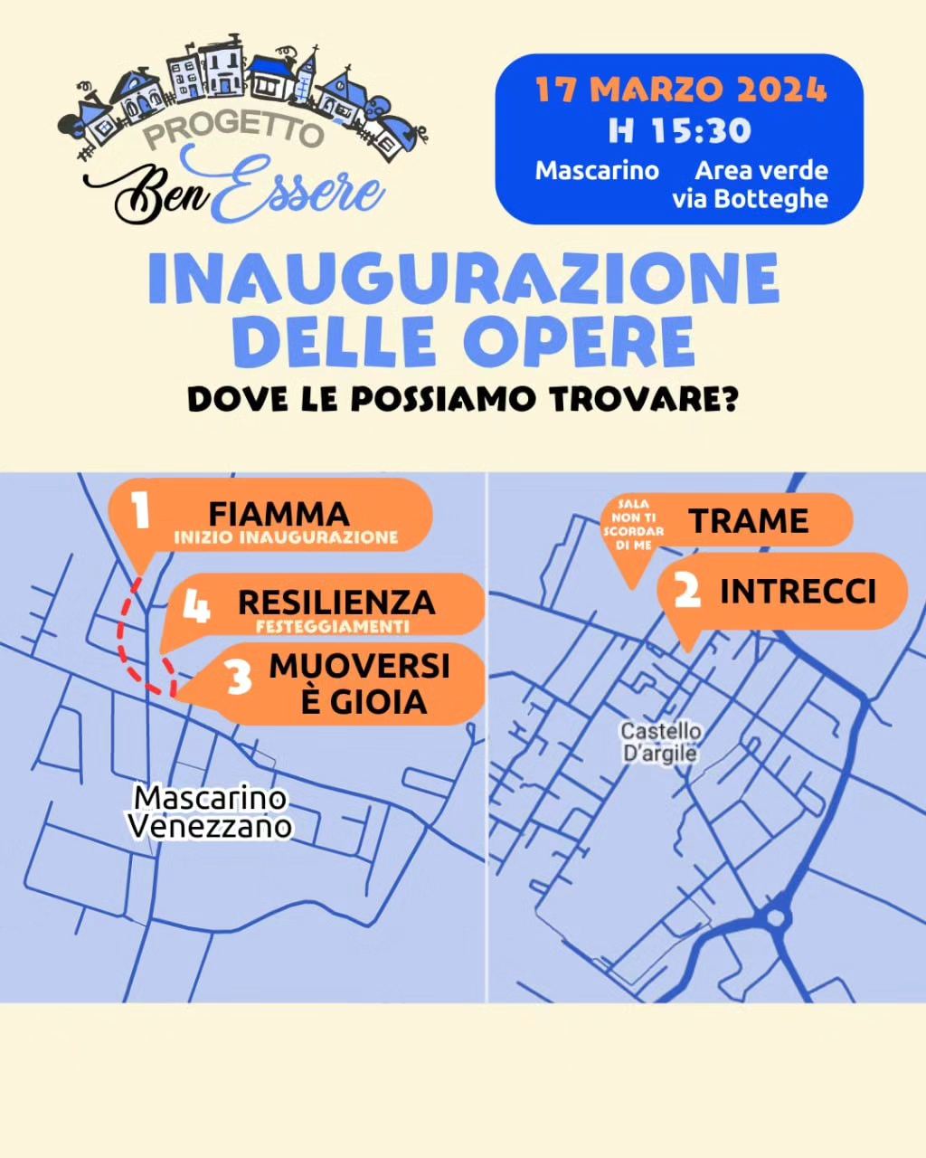 Domenica 17 marzo 2024 alle ore 15.30 nell'Area verde di Via Botteghe a Mascarino verranno inaugurate le opere del Progetto Benessere.