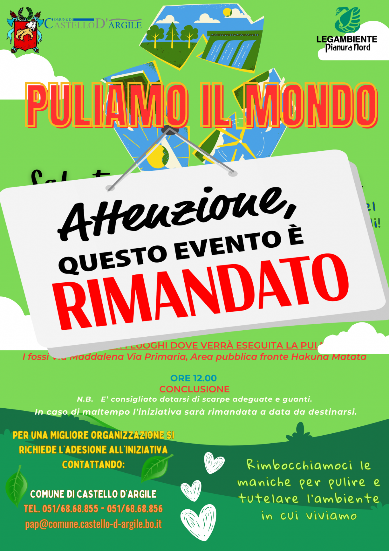 A Causa delle condizioni metereologiche avverse, l'iniziativa "PULIAMO IL MONDO 2024" è rinviata a data da destinarsi.