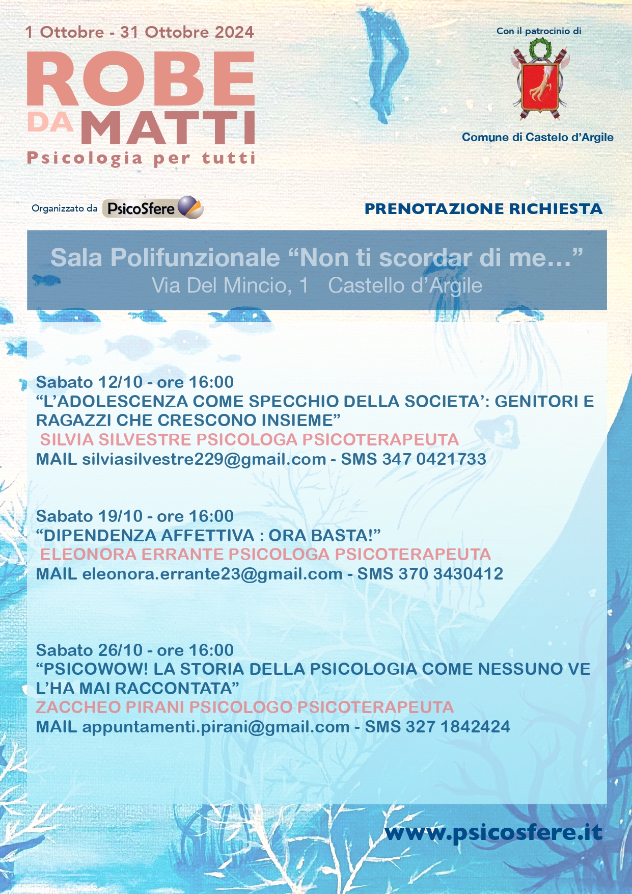 Organizzato da PSICOSFERE con il patrocinio del Comune di Castello d'Argile