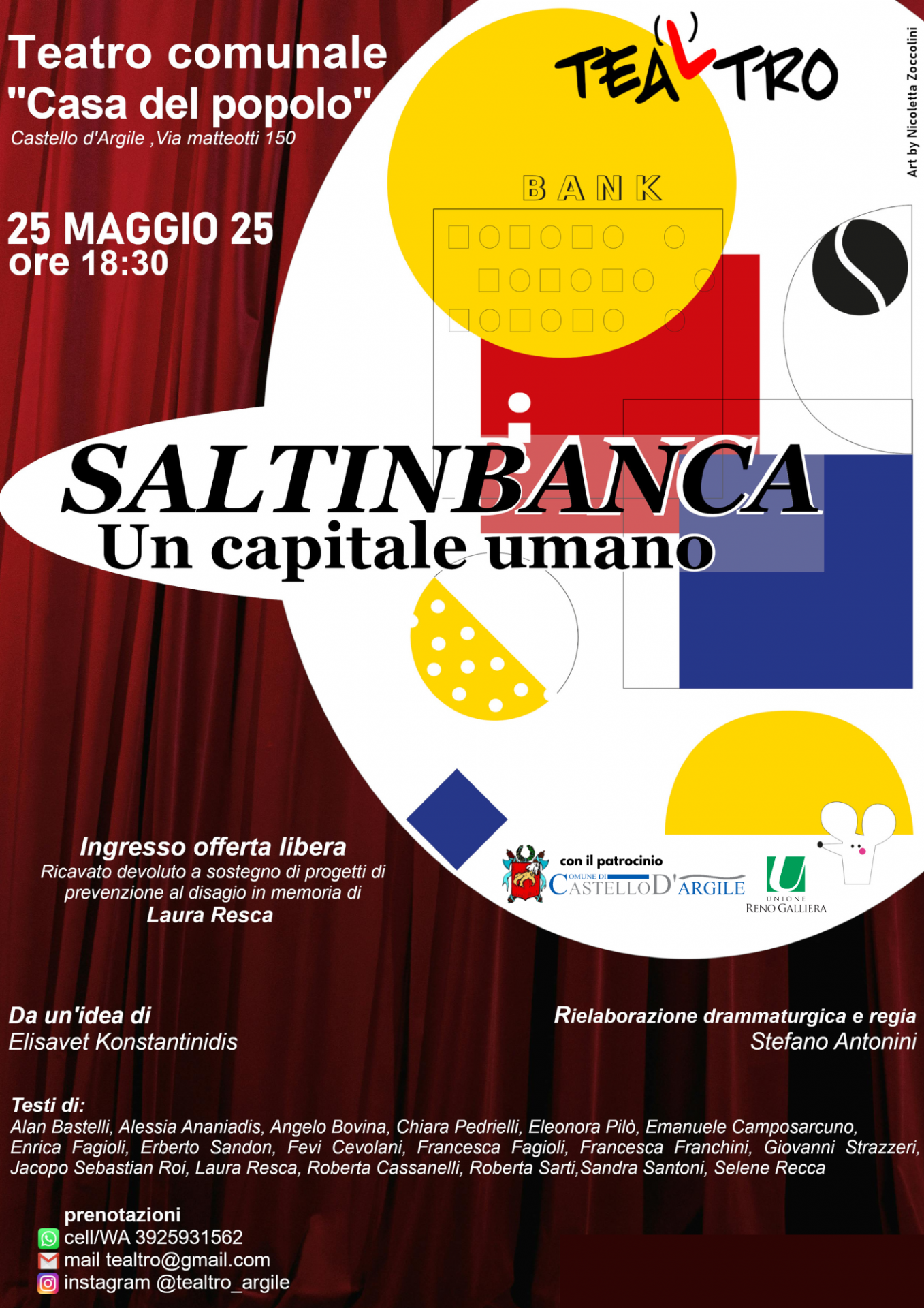 Domenica 25 maggio alle ore 18.30 presso il Teatro Comunale "La Casa del Popolo" in via G. Matteotti 150 a Castello d'Argile l'Associazione TeaLtro presenta: