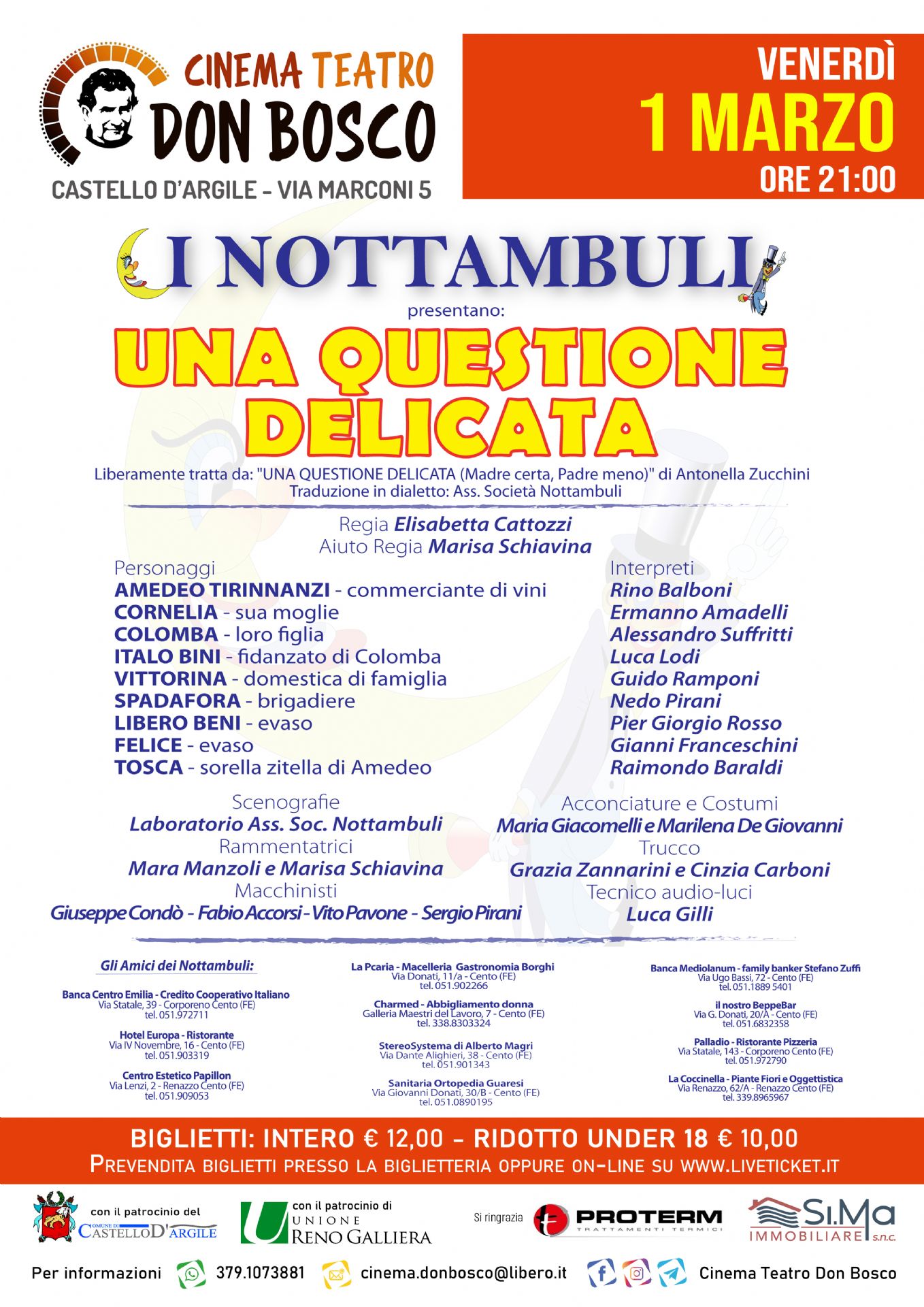 VENERDI' 1 MARZO alle ore 21.00 presso il Cinema Teatro Don Bosco a Castello d'Argile in via G. Marconi 5