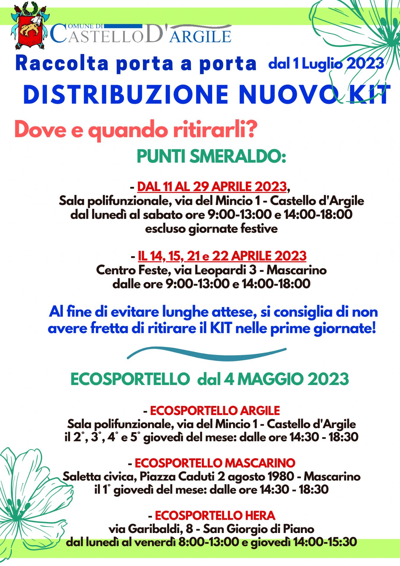 Dall'11 al 29 APRILE 2023 verrà distribuito il nuovo KIT per la Raccolta porta a porta dei rifiuti