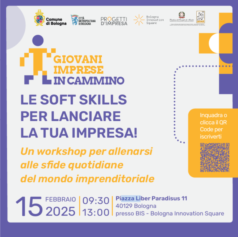 Il workshop si terrà sabato 15 febbraio 2025 dalle ore 9.30 alle ore 13.00 presso BIS - Bologna Innovation Square, Piazza Liber Paradisus 11, 40129 Bologna.