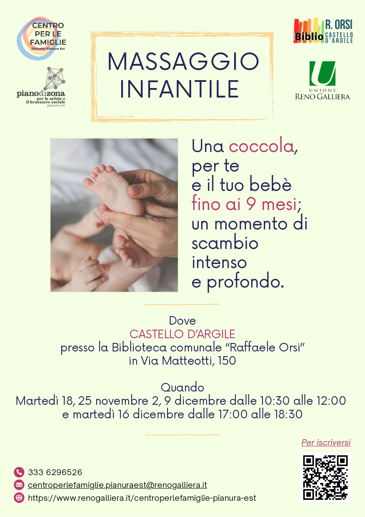 Il percorso di massaggio infantile prevede un ciclo di 5 incontri, condotti da una operatrice AIMI - Associazione Italiana Massaggio Infantile.