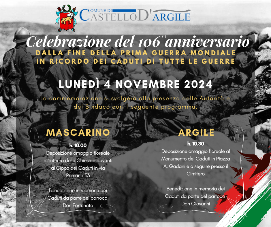 - ore 10,00 Deposizione omaggio floreale nella Chiesa e al Cippo dei Caduti in via Primaria 33