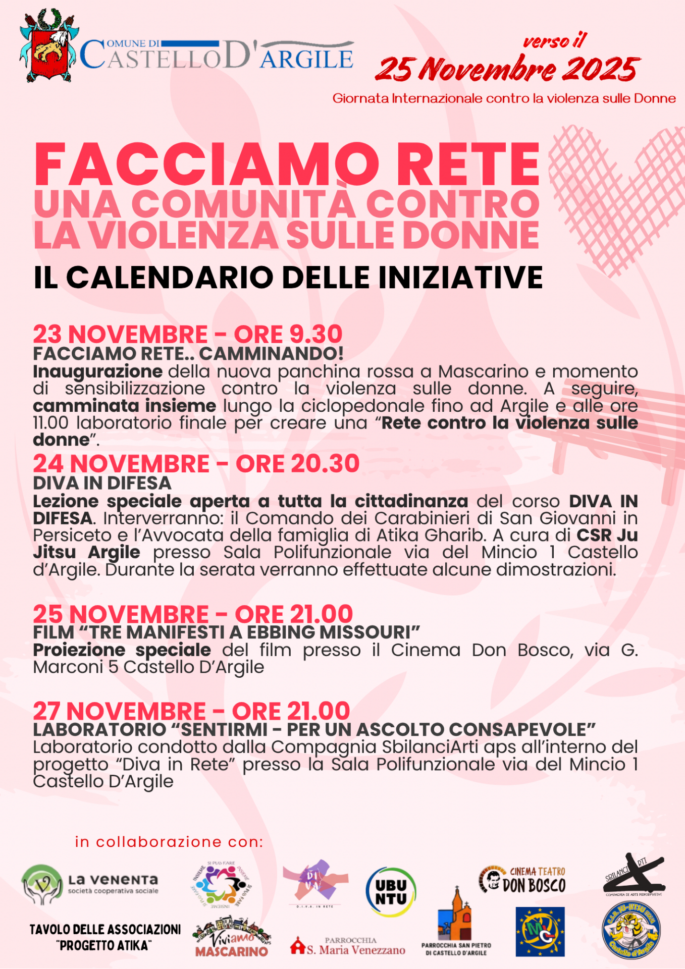FACCIAMO RETE Una Comunità contro la violenza sulle Donne - IL CALENDARIO DELLE INIZIATIVE