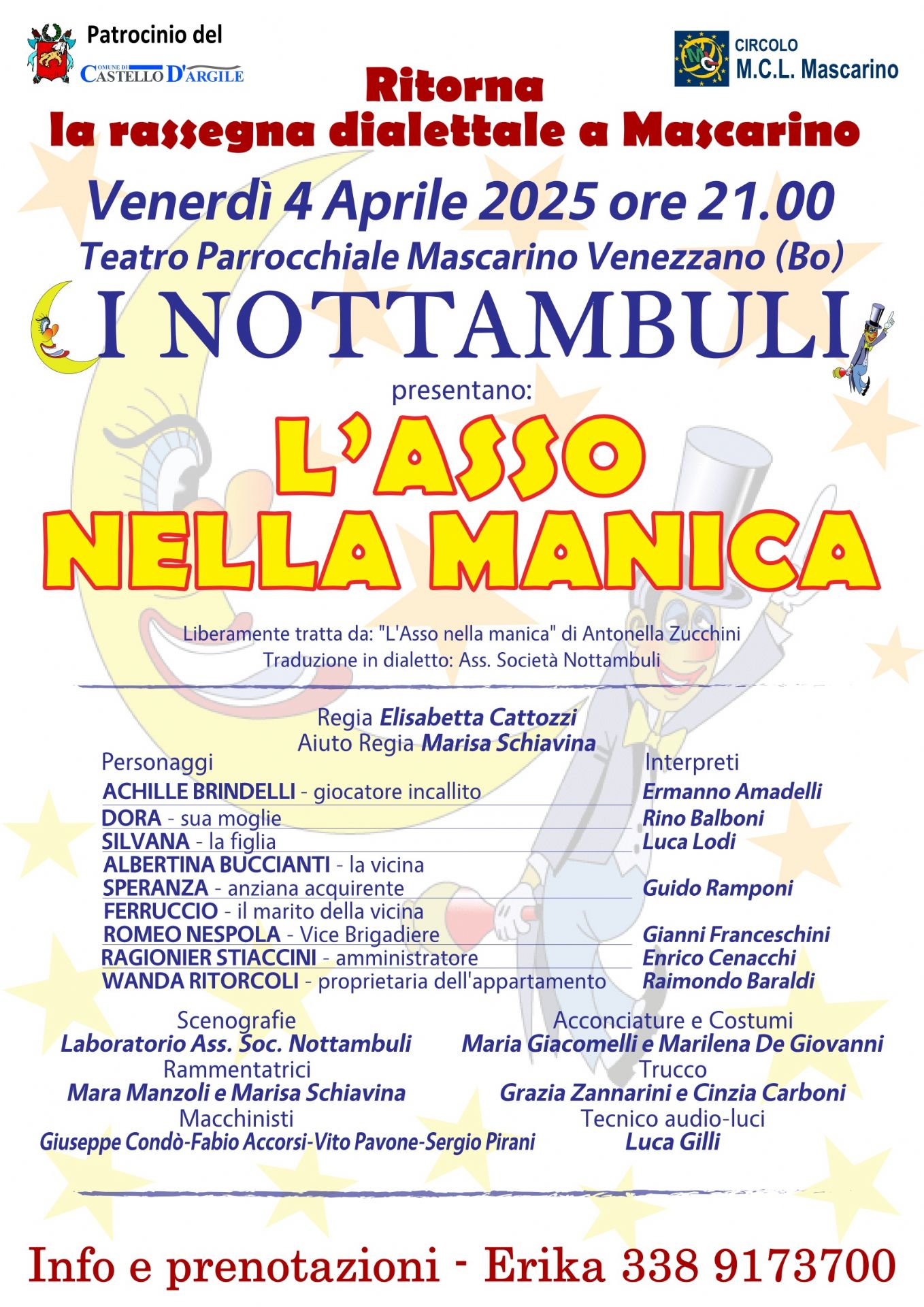 Venerdì 4 aprile 2025 alle ore 21.00 presso il Teatro Parrocchiale di Mascarino Venezzano I Nottambuli presentano "L'Asso nella manica".