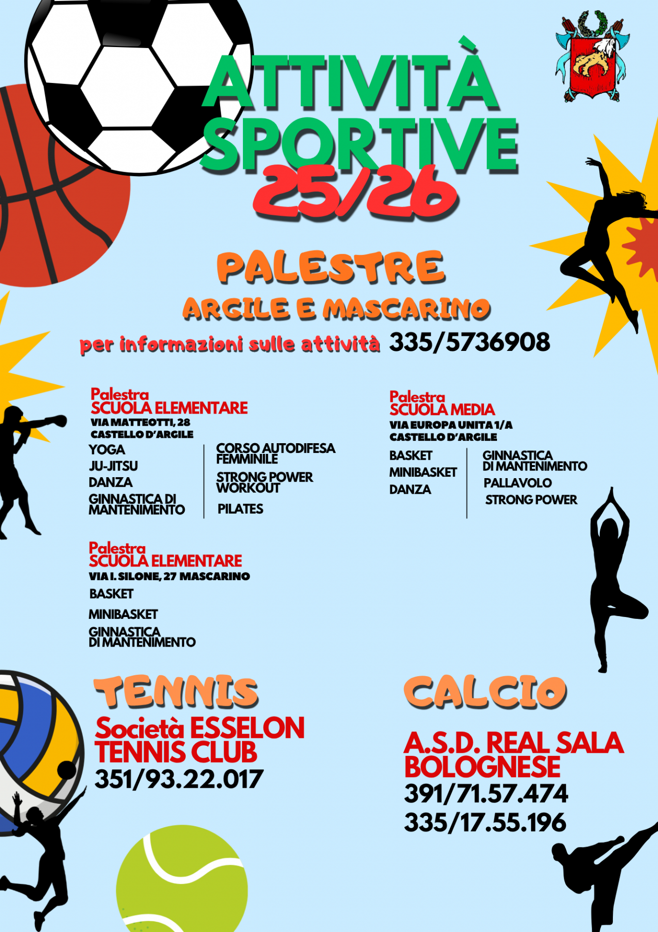 - Calcio: Segreteria Real Sala – 391 7157474 / Resp. tecnico – 335 1755196