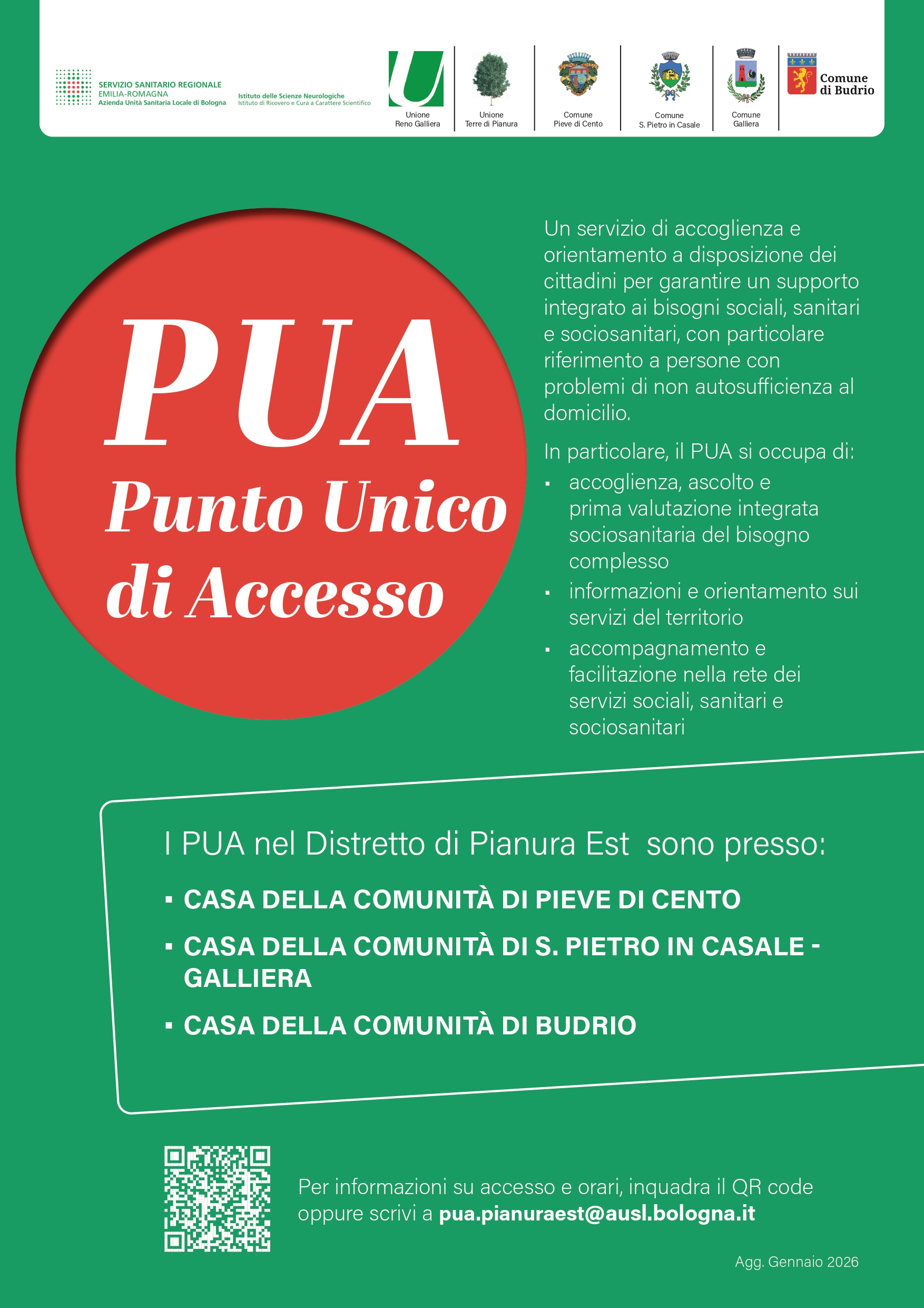 Sono tre i Punti Unici di Accesso presenti nelle Case della Comunità del Distretto Pianura Est e rispettivamente:
