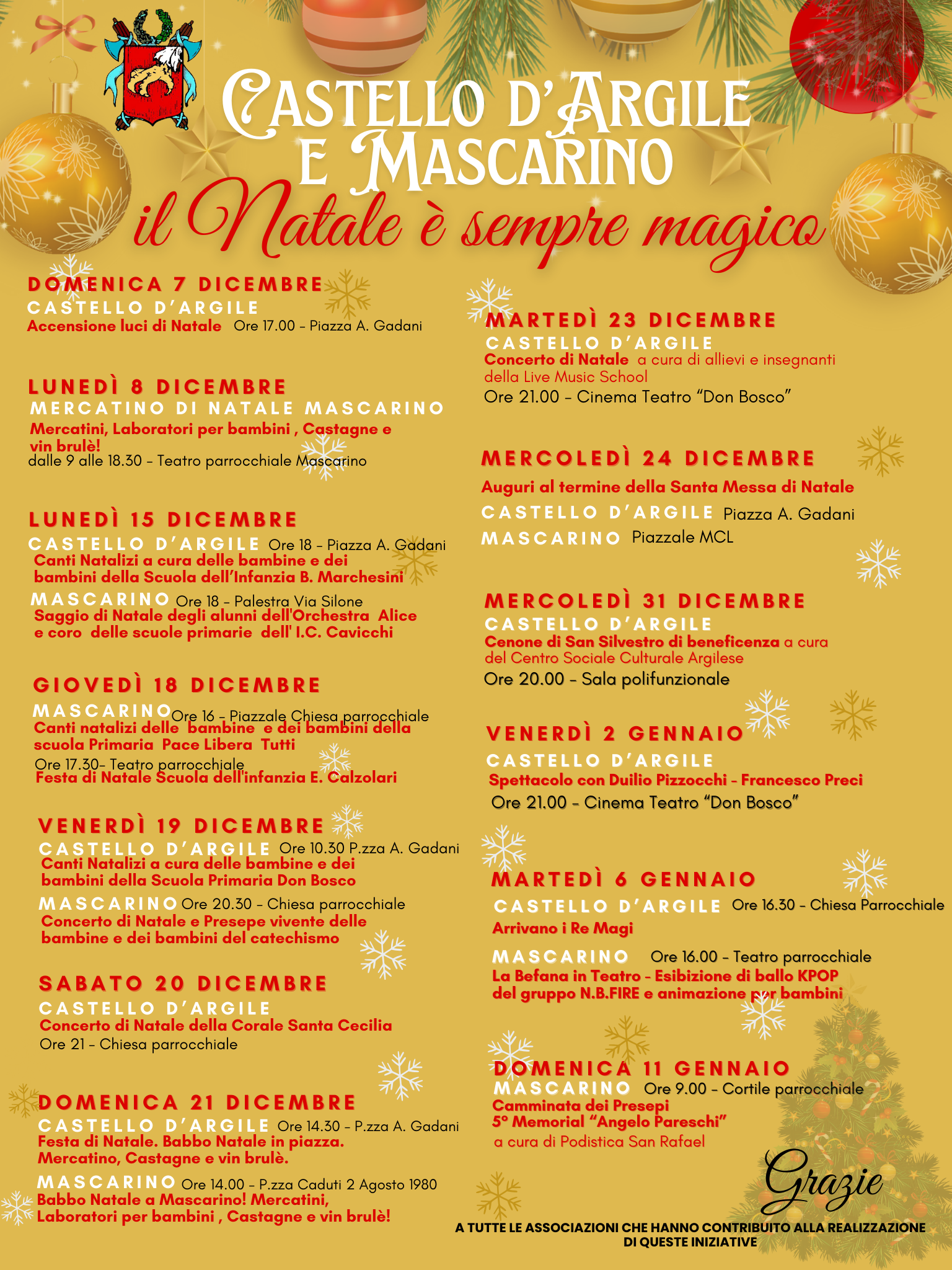 Ecco il programma di tutti gli eventi da dicembre 2025 a gennaio 2026: