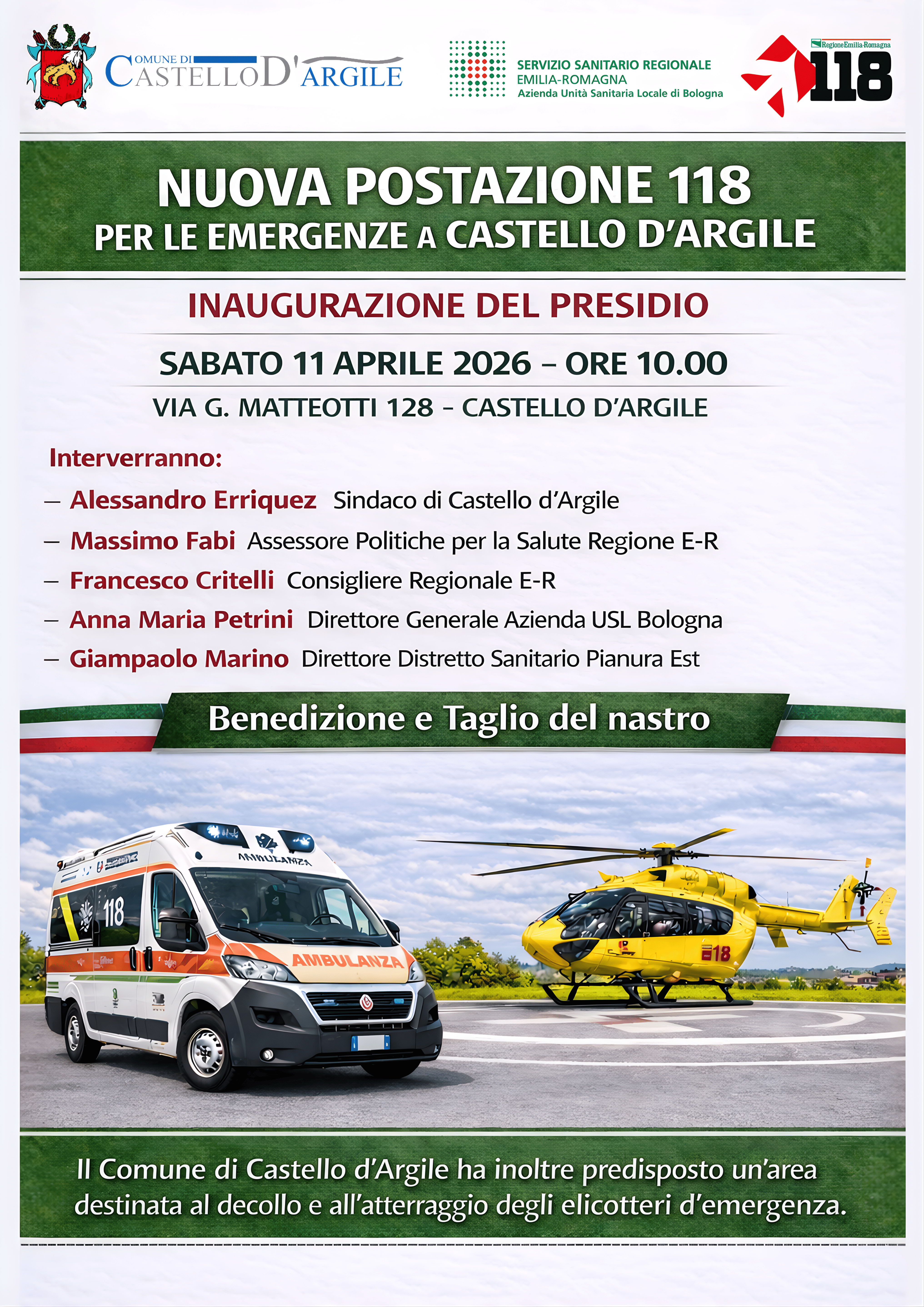 NUOVA POSTAZIONE 118 PER LE EMERGENZE A CASTELLO D'ARGILE