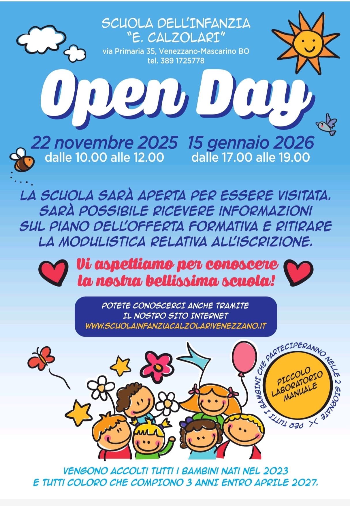 Per tutti i bambini che parteciperanno nelle due giornate si svolgerà un piccolo laboratorio manuale!