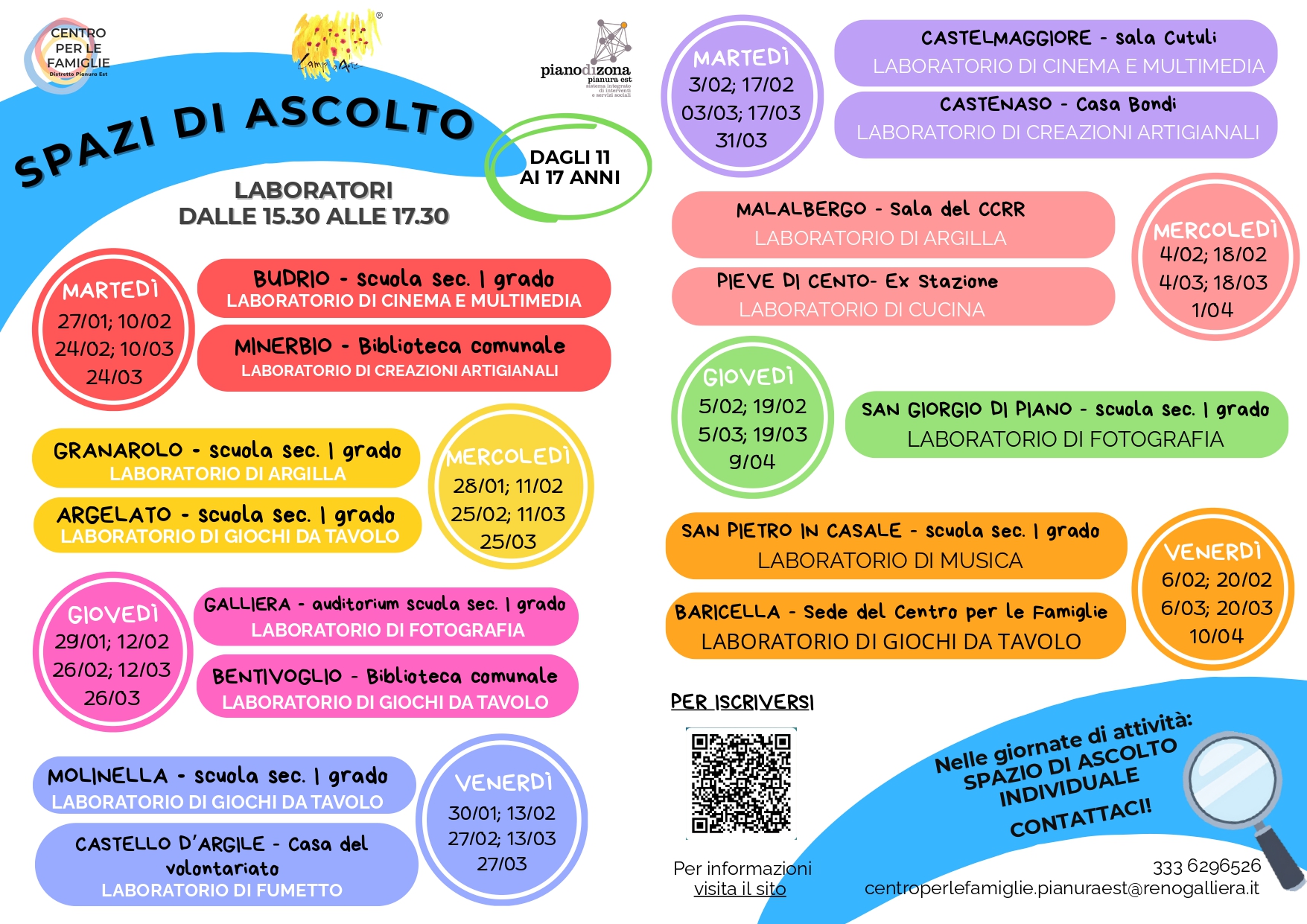 In allegato anche il calendario completo di tutti i laboratori presenti nei nostri territori: