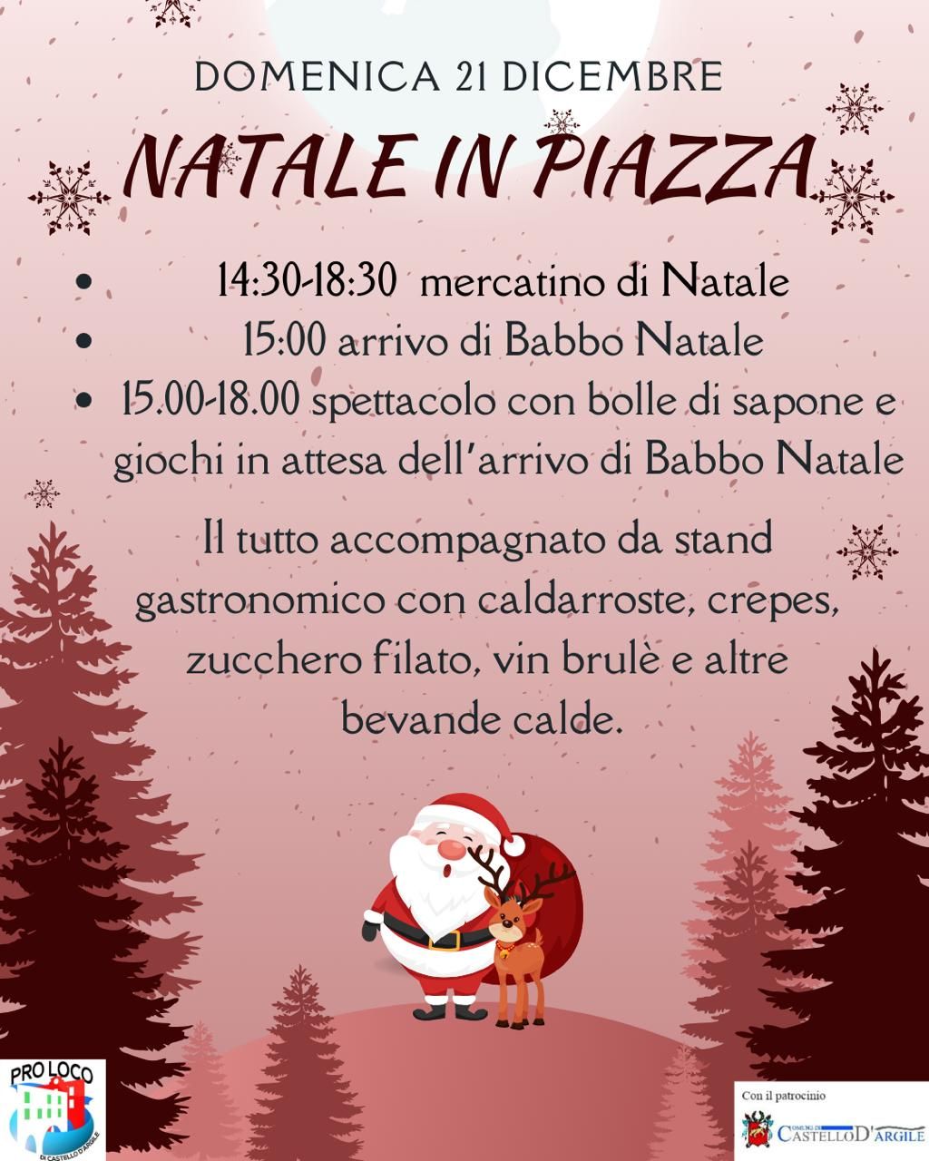 Dalle ore 15.00 ci sarà uno spettacolo di Bolle di sapone e intrattenimento con giochi per piccoli e grandi in attesa dell'arrivo di Babbo Natale.