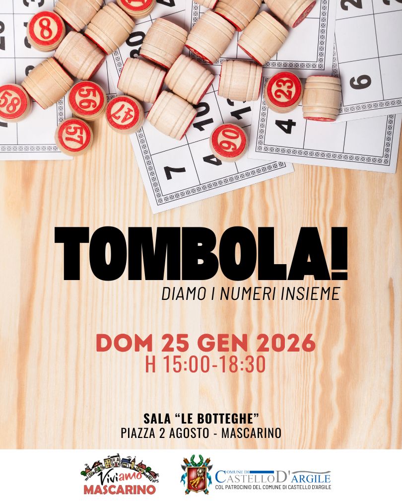 Domenica 25 gennaio 2026 ore 15,00presso sala "Le Botteghe"Piazza 2 Agosto - Mascarino