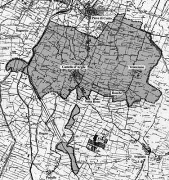 È quanto resta di pertinenza del Comune di un più vasto territorio, che arrivava fino al corso di Reno “vecchio” fino al 1460, comprendente anche l'area del Bagnetto, dal 1800 inserito nel comune di San Giovanni in Persiceto, estesa fino al confine col centese, all'altezza del palazzo Ariosti; porzione di territorio che fu separata da Argile dal nuovo alveo del fiume fatto scorrere da allora tra Pieve e Cento.